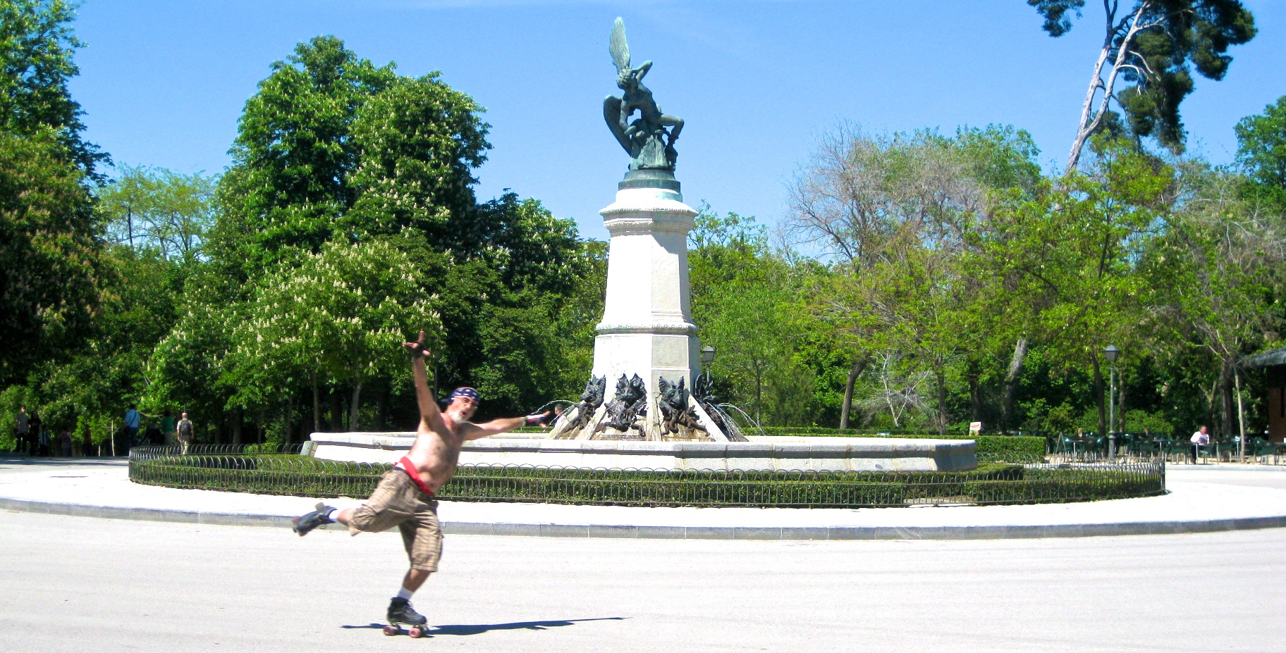 …is thinking I was writing this post on another secret (no longer secret) ‘in the works’ blog project of mine, then suddenly realising I am writing the draft post here on Notesfromspain.com by mistake instead, and deciding to publish it here anyway. I’ll add a pretty photo to the top too, of the super-happy guy who skates around the statue of the devil in the Retiro park. Hopefully the photo or the words will make someone happier. Maybe I’ll explain all the points one by one on my the new blog if anyone is interested. Or here. There are no mistakes after all! Un abrazo, Ben